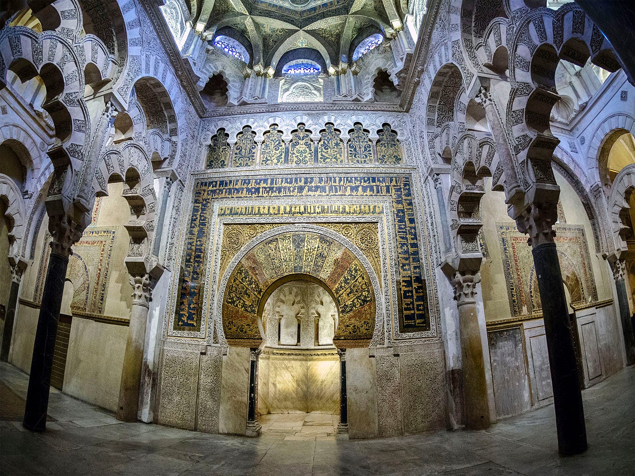 Abd al-Rahman II (821-852), who ruled 50 years later, added eight more aisles with their columns and arches, and 100 years later, Al Hakam II (961-976), added yet another 12 aisles to take care of the needs of a quickly expanding population. Al Hakam also installed an intricately designed seating area called a maqsurah for the Caliph and his family as well as the piece-de-resistance – the most stunning feature of the mosque – a mihrab or prayer niche on the southeastern wall (qibla) in the direction of Mecca, although for some reason in this mosque the qibla wall is not in that direction.